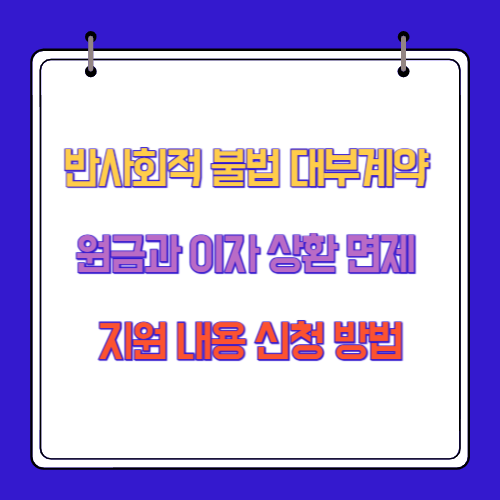 반사회적 불법 대부계약은 법적으로 무효로 간주되어 원금과 이자를 상환할 의무가 없다는 사실, 알고 계셨나요? 이 글에서는 2025년 7월 22일부터 개정된 대부업법에 대해 반사회적 불법 대부계약의 정의, 지원 내용, 신청 방법, 그리고 주의사항 등을 자세히 알려드립니다. 불법 대부계약으로부터 벗어나고 싶다면, 지금 바로 이 내용을 확인하시고 신청하세요.